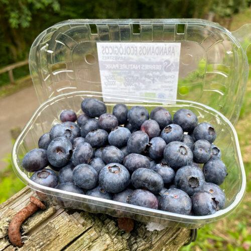Avalados por el Consejo de la Producción Agraria Ecologica del Principado de Asturias (COPAE) y el certificado de Agricultura Ecológica de la UE, y el sello de calidad ALIMENTOS DEL PARAISO, nuestros arándanos azules son las bayas del arbusto Vaccinium corymbosum. Se obtienen mediante la producción agraria y su elaboración ecológica, también conocida como biológica u orgánica, es un sistema alternativo de producción agrícola que permite obtener alimentos (de origen vegetal y animal) de la máxima calidad y libres de residuos químicos, respetando el medio ambiente y conservando o mejorando la fertilidad del suelo mediante la utilización óptima de recursos naturales. Nuestros arándanos se mantienen frescos todo el año, en nuestra plantación poseemos diversas variedades de plantas con diferentes épocas de maduración: temprana, mediana estación y tardía, lo que nos permite tener fruta fresca durante toda la época estival (de primavera a otoño).